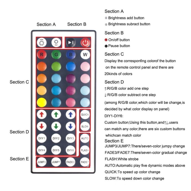 44 Keys Infrared Remote Control