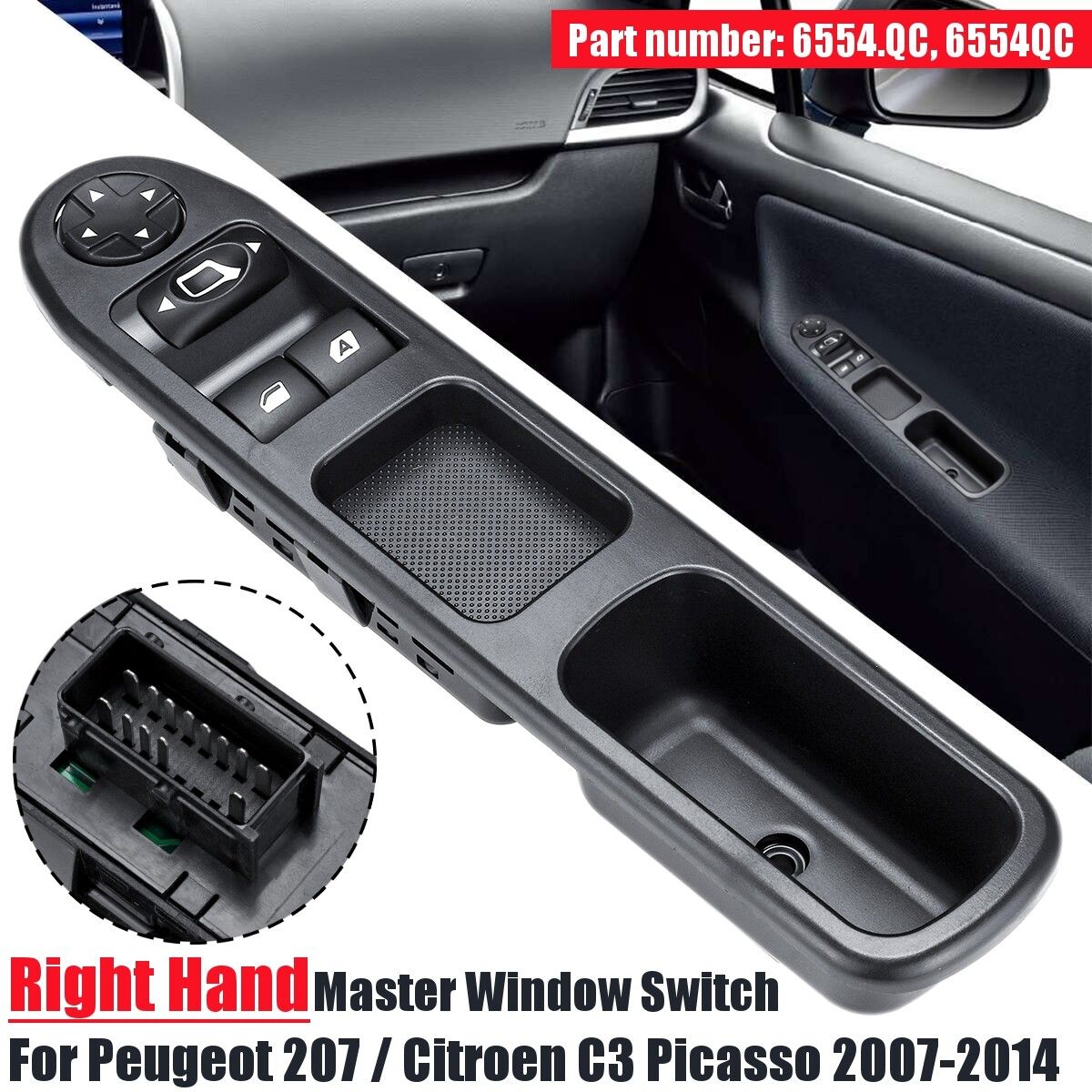 6554.QC Right Hand Driver Side Master Control Window Switch For Peugeot 207 / Citroen C3 Picasso 2007-2014