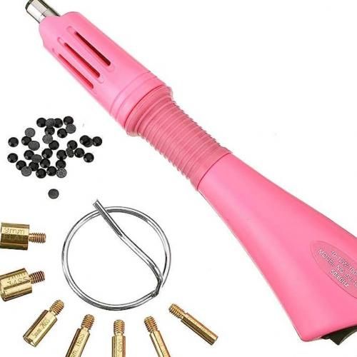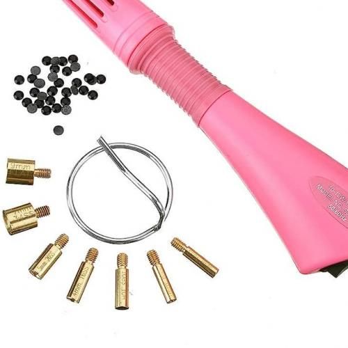 Create beautiful designs on a variety of accessories with this Rhinestone Setter Hot Fix Applicator. It is a tool that allows the user to affix rhinestones to most surfaces with ease. This stone or rhinestone setter tool includes one wand with an on / off switch, a stand for cooling and tips, which are for crystals and for studs.FeaturesTool features an on / off switch Ideal for applying rhinestones to most surfacesIncludes tips for stnes and studsThis rhinestone applicator comes with one support stand for cooling On / off switch with light indicator Warms in just 2minsSoft hand grip