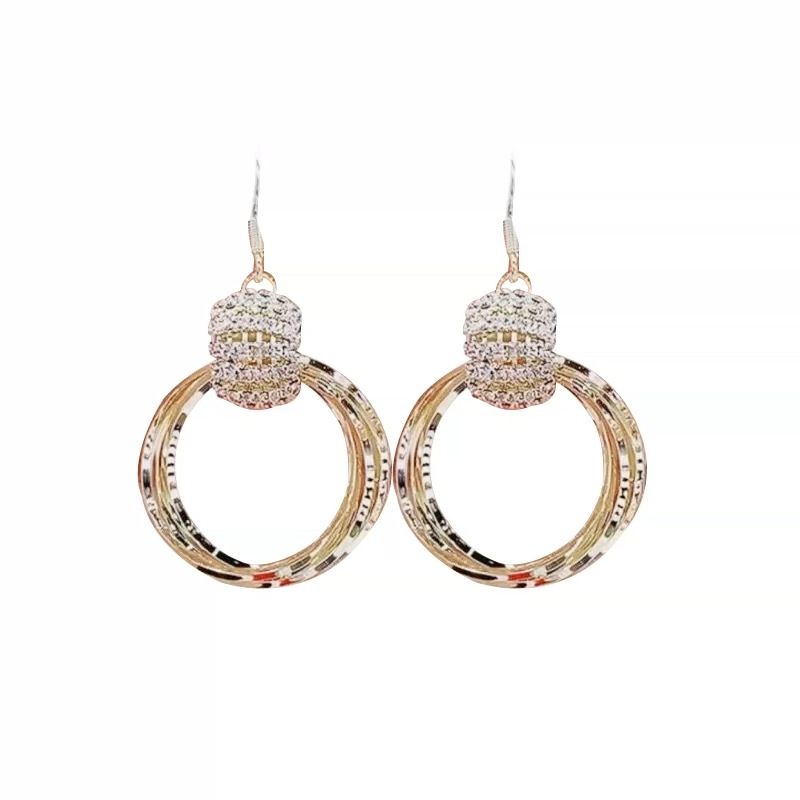 Rhinestone big Circle temperament gold earrings