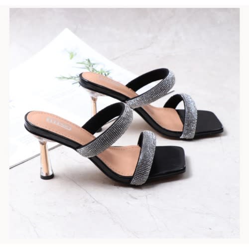 Buy Rhinestone Decor Two Band 8.5cm Stiletto Heeled Slippers in Nigeria
