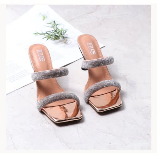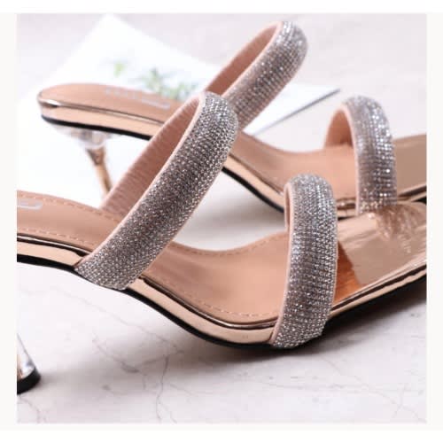 Buy Rhinestone Decor Two Bands 8.5cm Stiletto Heeled Slippers in Nigeria