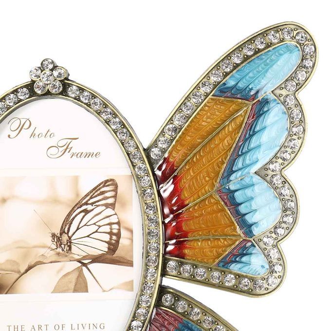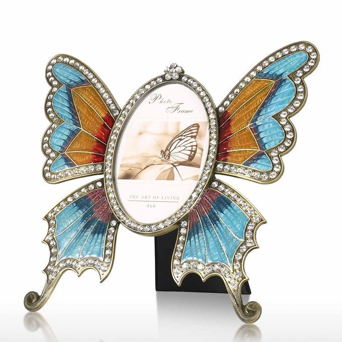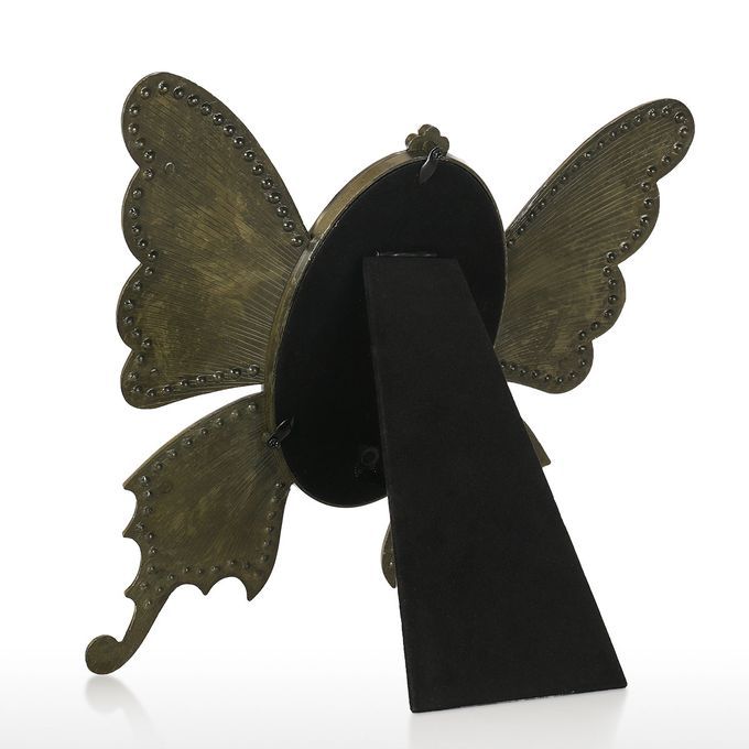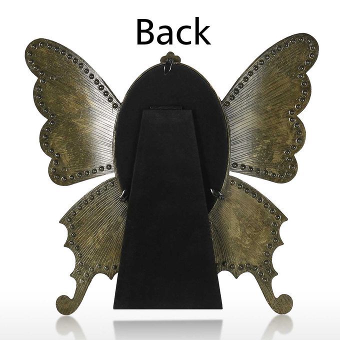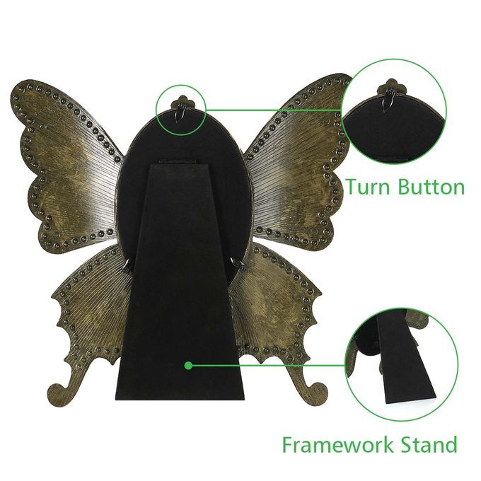 The picture frame is shaped by a beautiful scalewing. It has beautiful pattern around the edge, lovely and charming. The scalewing is made of exquisite metal. It is easy to care for, vintage and sturdy. The frame has easel for tabletop display. It is suitable for vertical display. You can place your photo from the backboard with a screwdriver(not included). This picture frame is perfect for your cherished memories, family portraits and vocation photos.