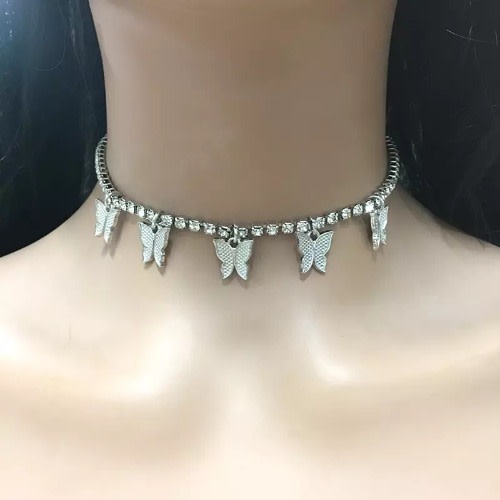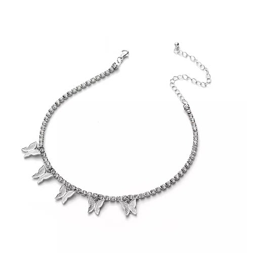 Buy Rhinestone Iced Out Tennis Butterfly Choker- Silver in Nigeria