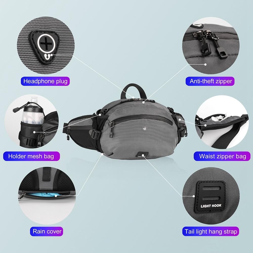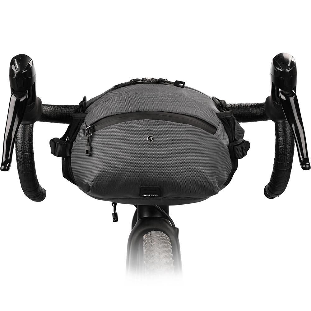 How to change the front bag and waist bag: The back of the bag body has a hidden waist belt compartment, and the waist belt can be stowed when cycling, and the handlebars can be fixed by three straps.