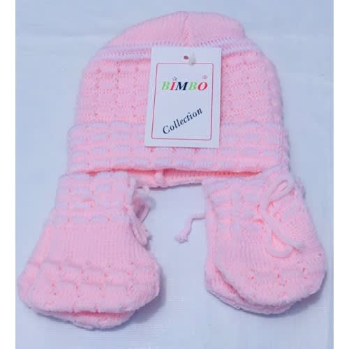 Buy Ribbed Beanie Wool Hat/mittens/socks-pink 0-3 Months in Nigeria