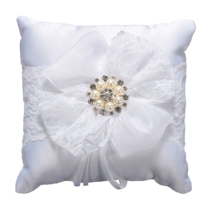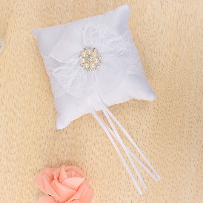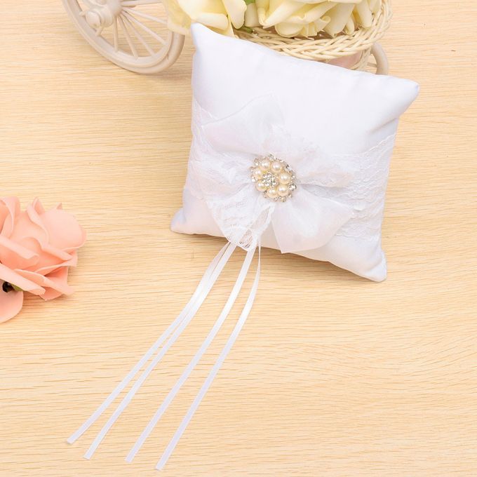 Similar Items Description Features: 1.Lace Ring Pillow Decorated With White Double Bow Ribbon, Fine Workmanship, Full Of Sweetness. 2.A Strap At Back For Holding. 3.Two Hanging Ribbons Are Used To Fasten The Ring. Specification: Color: White Size: About 14 x 14cm Material: Ribbon And Lace Package Include: 1x Wedding Ring Pillow