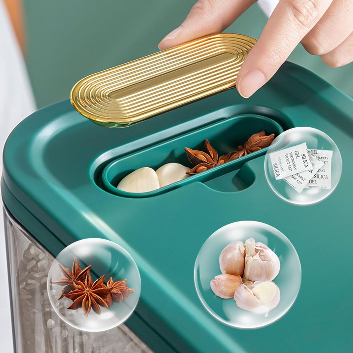Thanks to its push-type design, this rice barrel is convenient for taking rice, and it can automatically eject rice by pressing one button. And it has good sealing performance, which can effectively prevent water, moisture and dust.