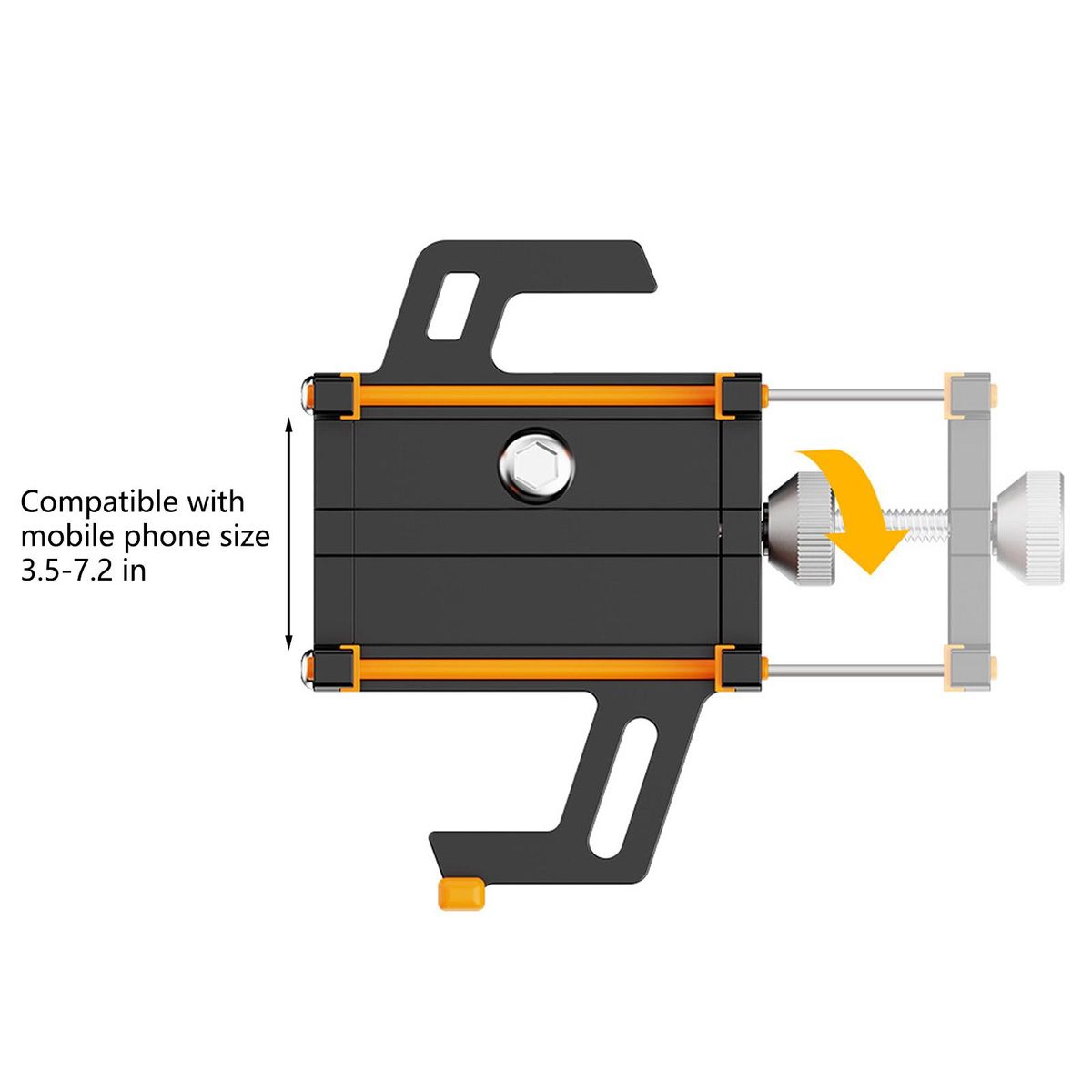 The compatible phone size is 3.5-7.2 Inches, and the compatible handlebar size is 1.8cm-4cm.