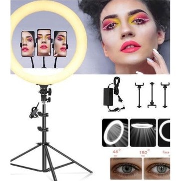 Ring Light With 3 Phone Holder & Tripod Stand - 18''