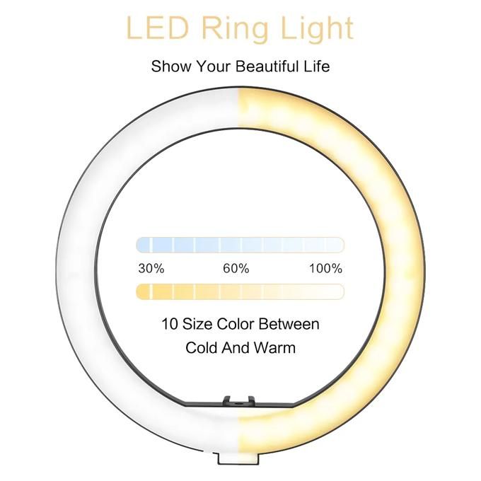 describe:- 10-Inch Ring Light: Dimmable and adjustable, you can adjust the lighting effect from 10%-100%. Selfie ring light makes you more charming.