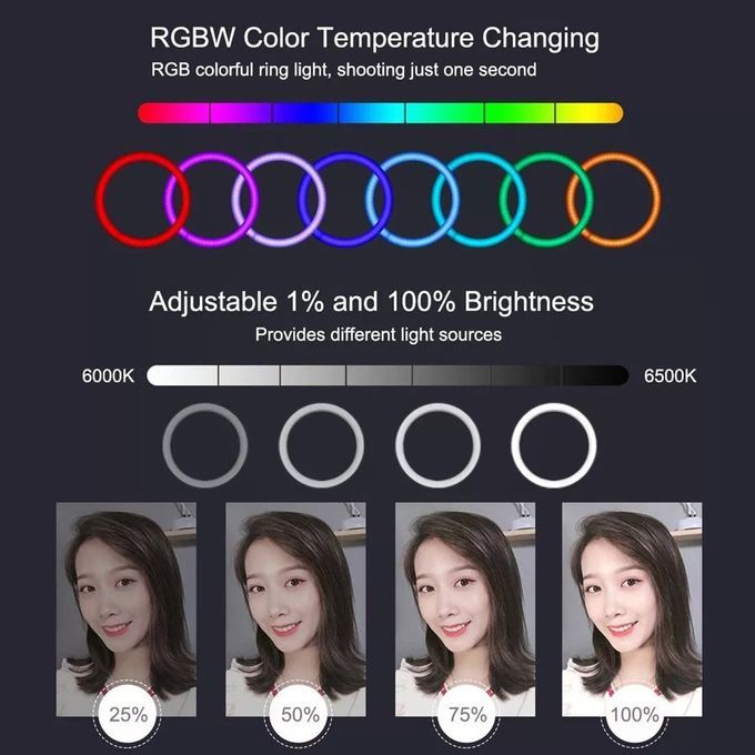 1. Ring light: The ring light has a tripod and a mobile phone holder, whi h an help you when you need other lighting, taking pi tures, videos, reading books and live broa asting.