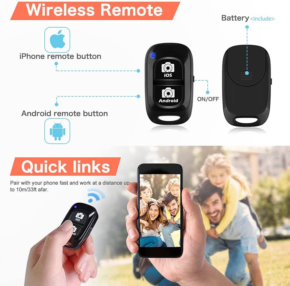 O Gooseneck (flexible) Phone Holder: Specially designed gooseneck supports 360° adjustment and the high-quality phone holder fits for most phones (width≤3.7-inch/9.5cm), such as iPhone 11/Max/X/XR/Xs/8/8Plus/7/7Plus/6/6Plus, Samsung Note 20 Ultra/10 +/10/9/8, S20 Ultra/S20/S10/S9/S8, etc. The wireless camera shutter is compatible with iOS & Android systems, making your photoing stable from shakes caused by your hands.