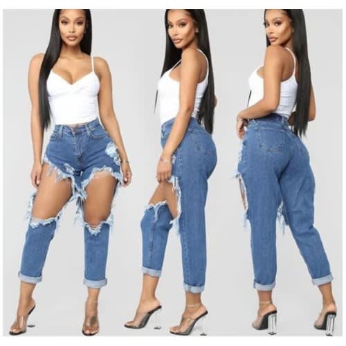 Buy Ripped Boyfriend High Waist Denim Jean in Nigeria