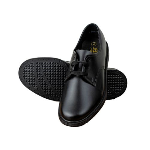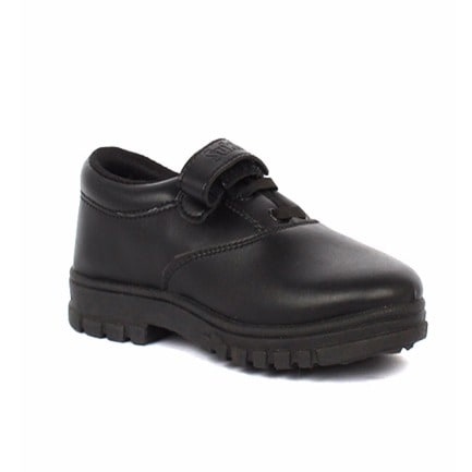 A school shoe made from quality material that is easy to clean/polish.