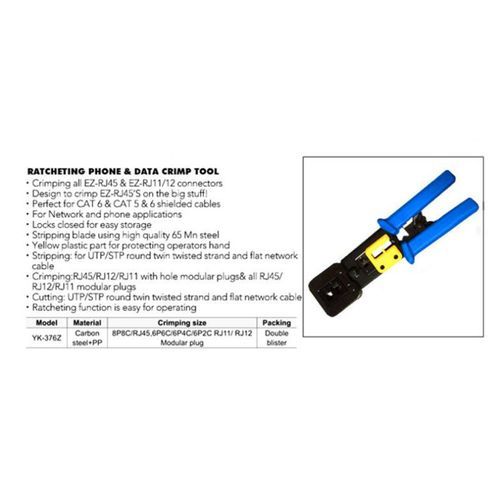 Tool steel die head assembly provides 360 degree of connector support during , expanded surface area on drivers delivers full, uniform force, built-in and stripper for flat and round cable.