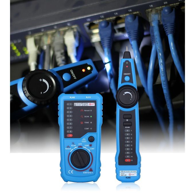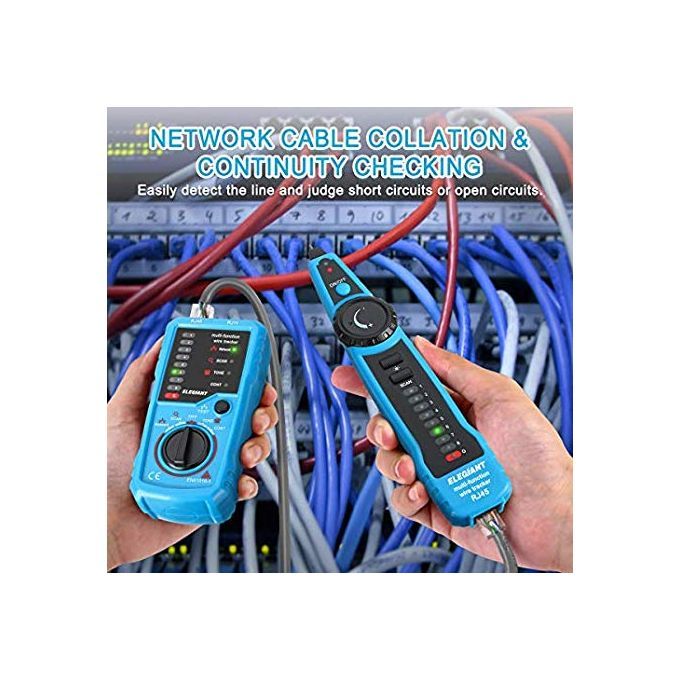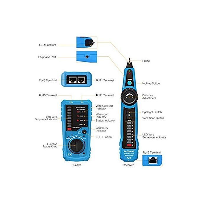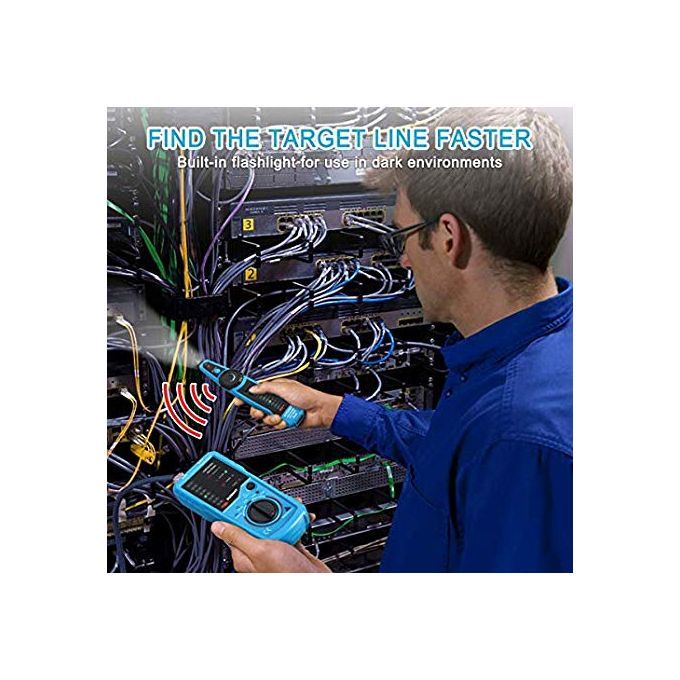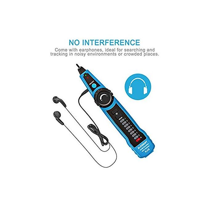 Product featuresProfessional Wire Tracker. It can help you quickly find the target line in many pairs. It is suitable for tracking RJ45 internet cable, RJ11 telephone line and other metal wire in low electricity. Please note that it can not be used to track wires with high electricity ( maximum currents for emitter and receiver are 10mA and 30mA respectively, and maximum voltage is 10V ). Besides, you may need two 9V laminated cells, which are NOT included in the packaging of this item.Network Cables Verifying. Plug one side of the cable into the emitter and the other side into the receiver. Select "Network" to check and verify whether the network cables are good or not. No need of network tester.Wire Tracking. It can trace not only Ethernet LAN wires, but also electrical and speaker wires when connecting to the alligator clip. In this situation, the wires must be in power-off status, otherwise the units will be damaged. It is recommended to stripe down some of the wires when connecting through the clip. Select "SCAN". Emitter works properly if the "SCAN" indicator is on. Use the receiver to find target wires. No need of multi-testers.Telephone Line Test. The work of the telephone line of the detection of various states, only the transmitter can be detected, such as determining TIP or PING line, to determine the work of the telephone line idle, ringing and off-hook state.Additional Earphone & Equipped Lamp. In a noisy environment, you can put on the earphones to accurately find the target cable through comparing the strength of "beep beep" sound. Adjust the volume knob to make the volume proper and avoid being interfered. At night or in a dark environment, you can turn on the illuminating lamp, which can be helpful during operating.Operating temperature: 0-40 degrees Celsius, maximal 80 percent relative humidity (non-condensing)Storage temperature: -10 -50 degrees Celsius, maximal 80 percent relative humidity (non-condensing)Altitude: less than 2000mAnti-explosion rating: IP40Distance of emitting signal: 300m or soEmitter battery: 6F 22/9V (not included)Receiver battery: 6F 22/9V (not included)Use a standard 9V alkaline product battery or 9V charging battery