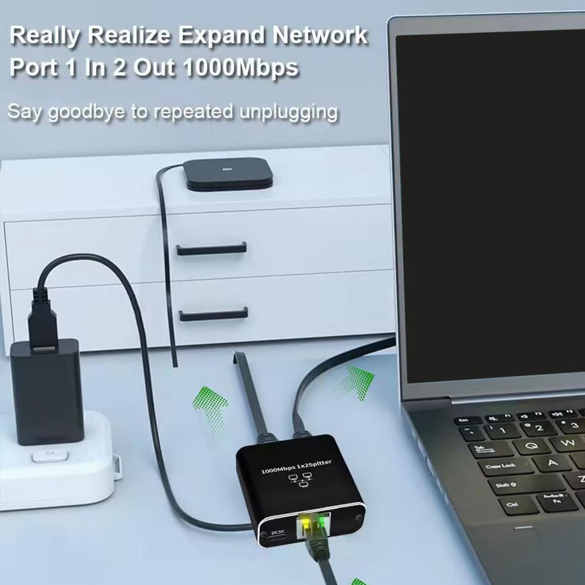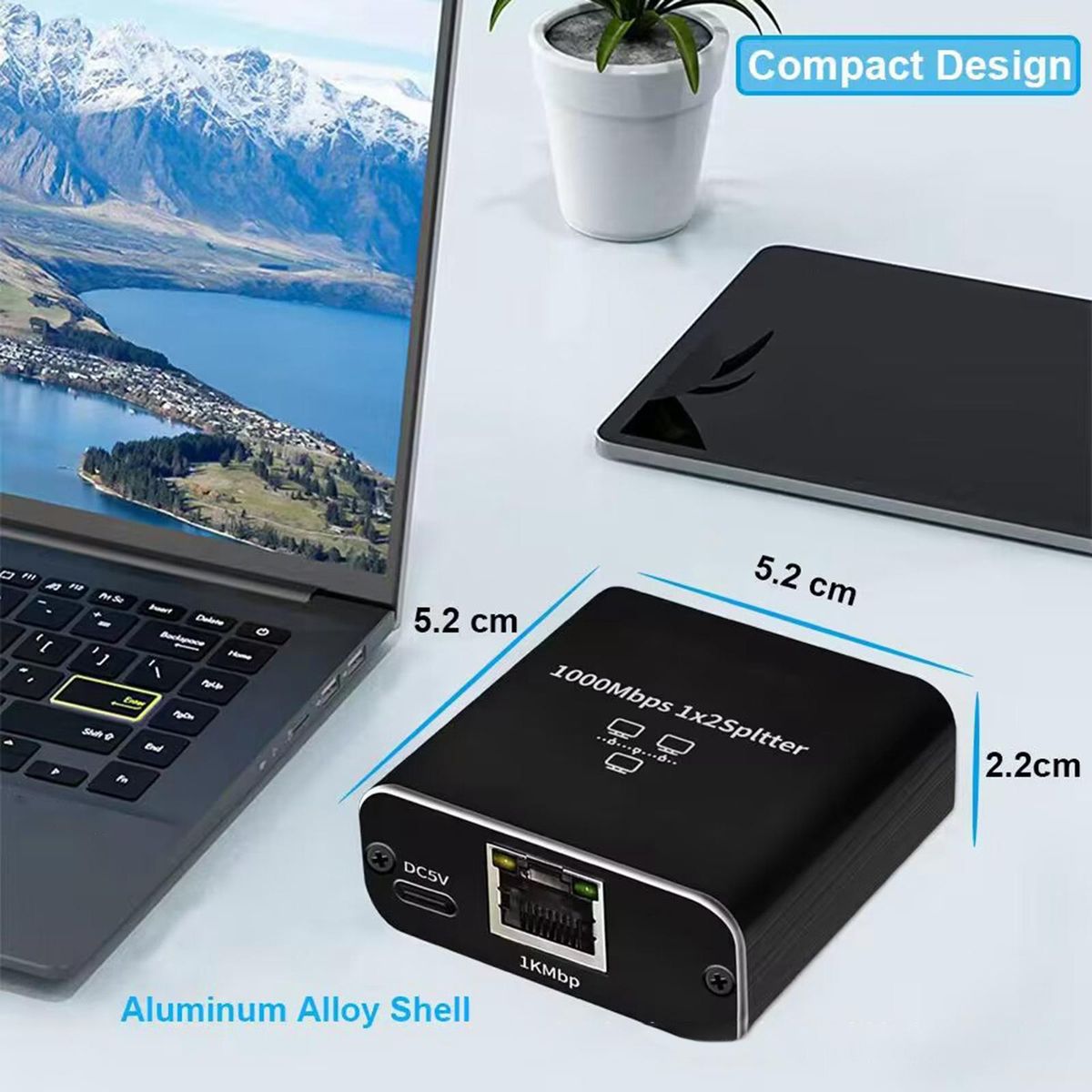 [Feature]: RJ45 Splitter 1 to 2 Ethernet Adapter Internet Network Cable Extender RJ45 Connector Coupler for PC Router . 1000Mbps Ethernet network Gigabit Splitter 1 to 2 RJ45 simultaneous,without any delay,with USB power,transmission up to 100 .