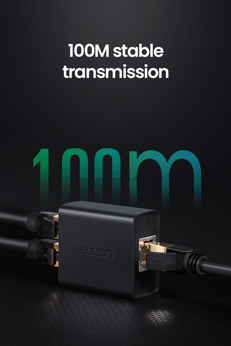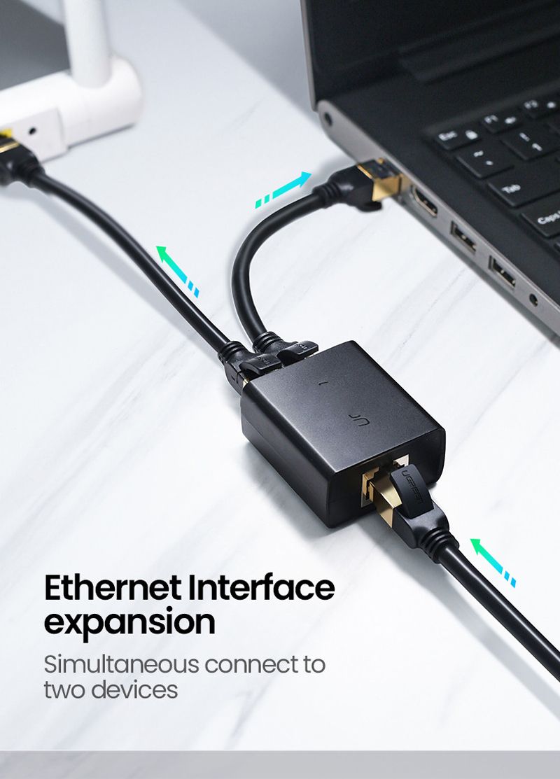 UGreen RJ45 Splitter 2 pack - 50923set-top boxes and routers are connected at the same time, and two devices are connected to the Internet at the same time, achieving the dual needs of watching TV and using the network.Connected with pure copper cable, transmission distance up to 100 meters, 100 megabit broadband.Shielding interference, thickened PCB board, equipped with metal shielding layer to protect the internal structure from signal interference, 100m transmission.Firm and durable, feel texture and cohesive, matte feel, gentle touch, anti-fingerprint, anti-scratch, and anti-scratch