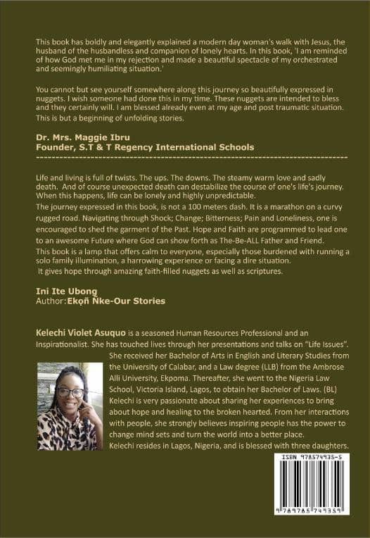 This book has boldly and elegantly explained a modern-day woman's walk with Jesus, the husband of the husbandless and companion of the lonely hearts. In this book, I am reminded of how God met me in my rejection and made a beautiful spectacle of my orchestrated and seemingly humiliating situation.