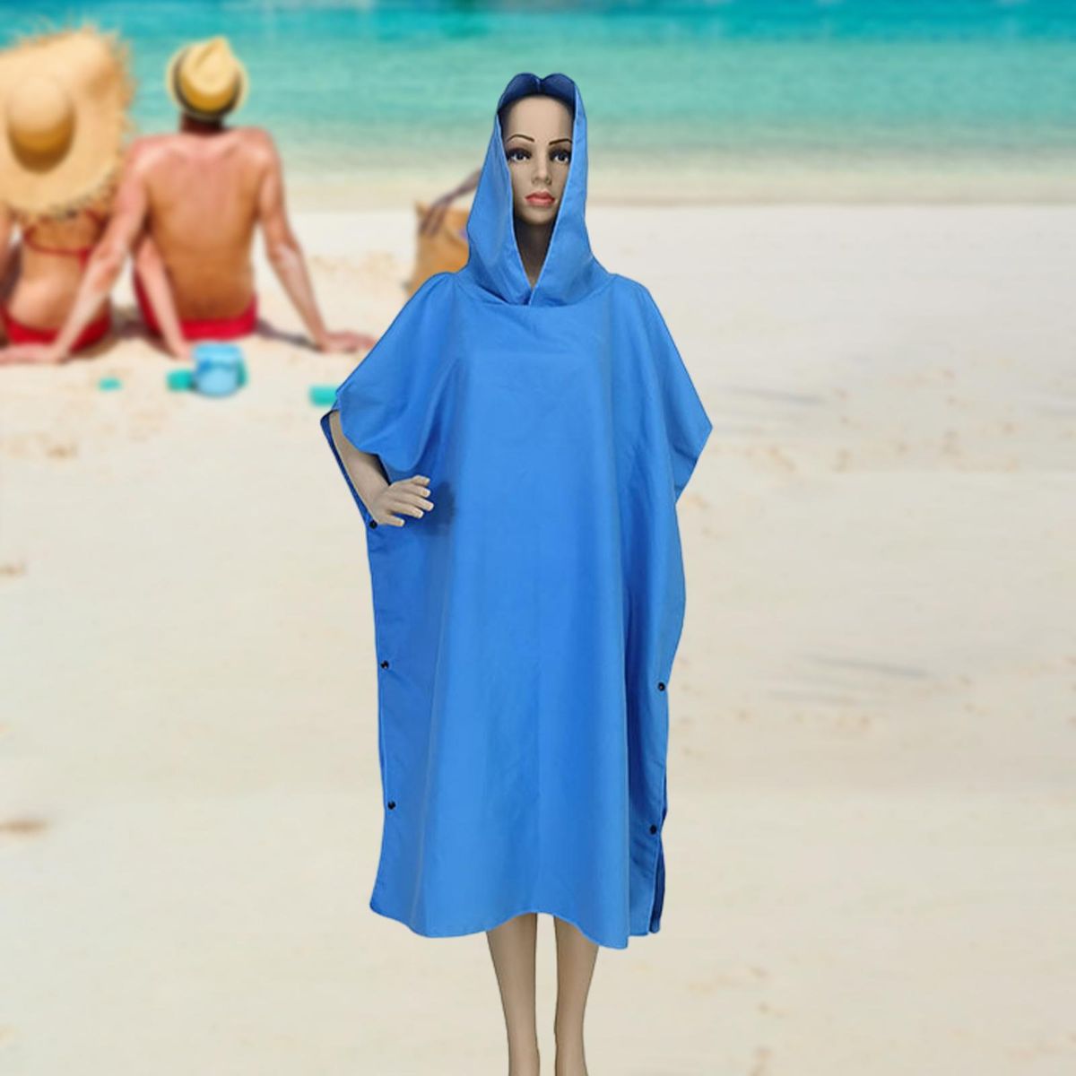 Our beach gown features wide armholes and an open bottom, allowing for easy movement and changing. the removable buttons on the side make it even easier to put on, so you can quickly change your swimsuit after surfing, swimming, or any outdoor activity. the large hood keeps you warm and adds an extra touch of style.