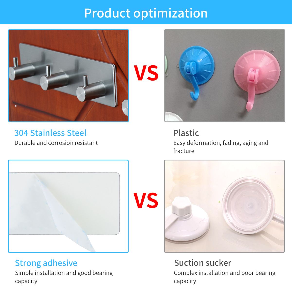 Super practical, this is best adhesive hooks for hanging towel, robe, bath loofahs, coat, keys, hats and kitchen utensils, etc.