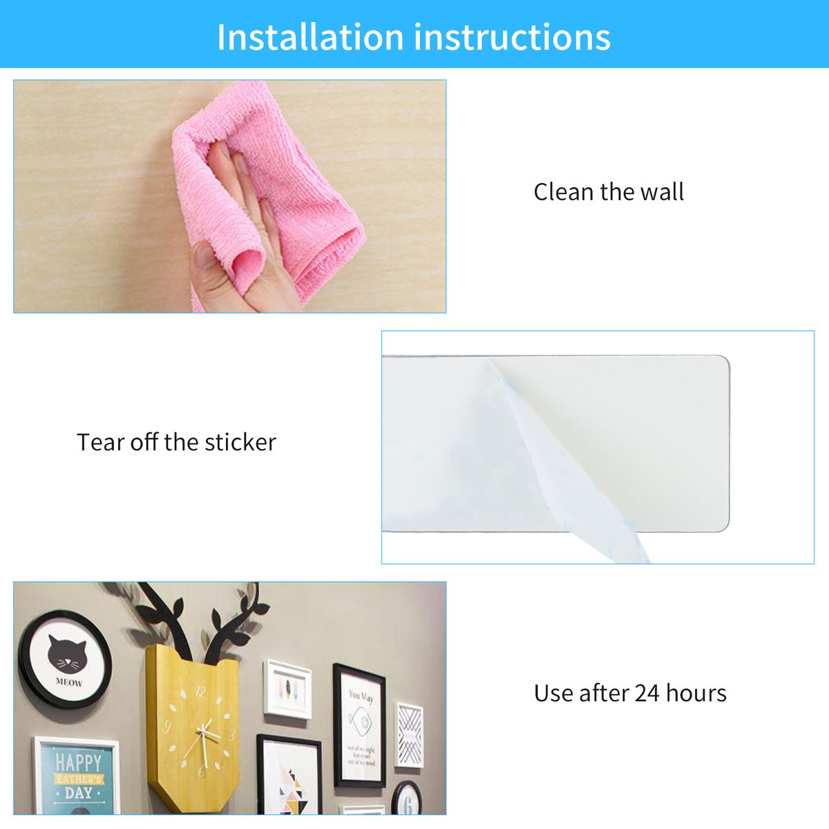 Note: not suitable for painted wall, wallpaper and rough surfaces.