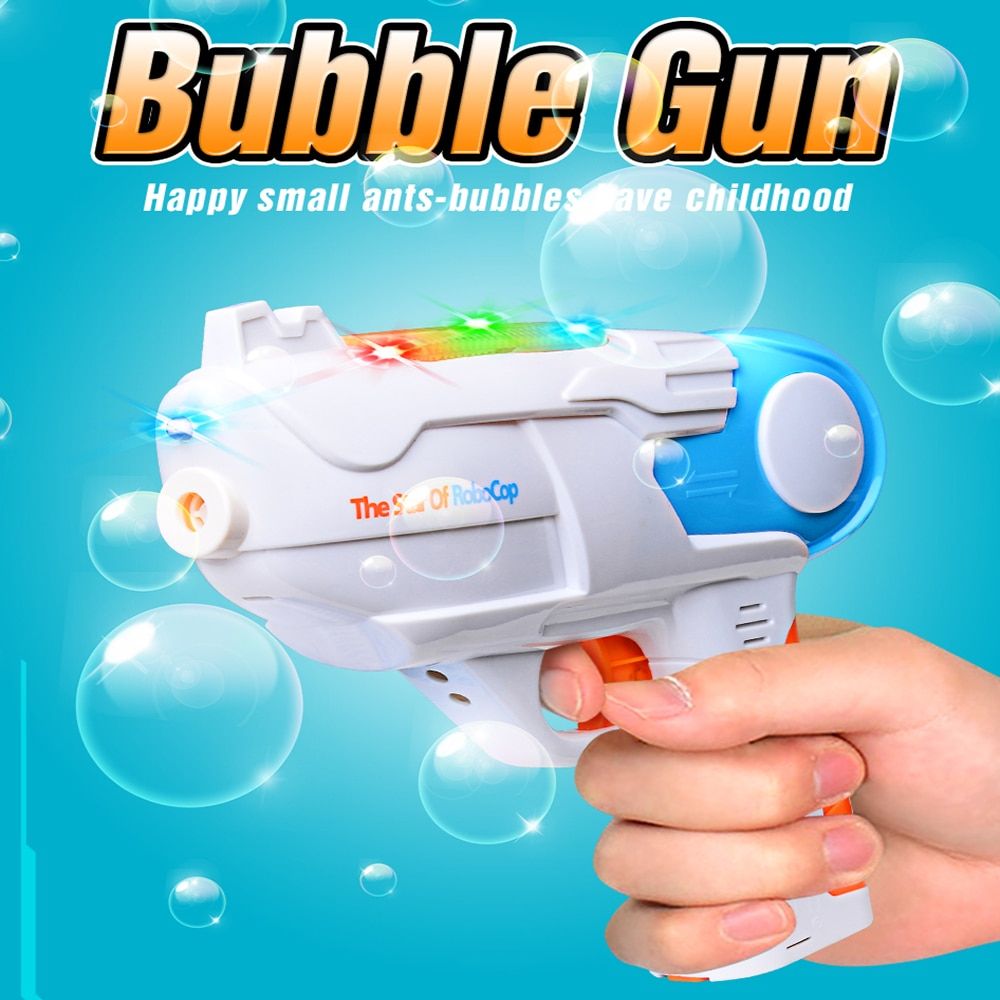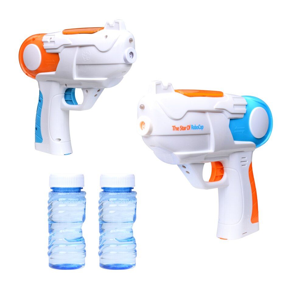 1X RoboCop B/O Bubble Gun Shooter Music Lights Bubble Blower Water Hold Return Cartoon Electric Automatic Bubble Maker Gun Kid Toys