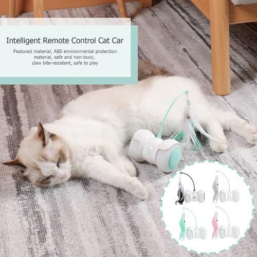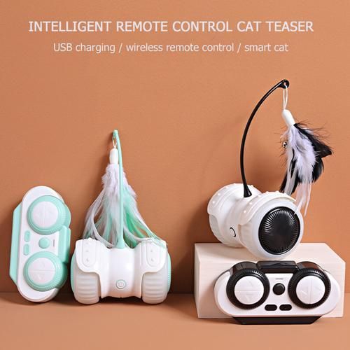 Robotic Cat Toys for Indoor Cats, Remote Control, USB Rechargeable, Colorful LED Lights, Automatic Interactive Electric Kitten Toy with 6 Feather Bells, Available for Floors/Carpet