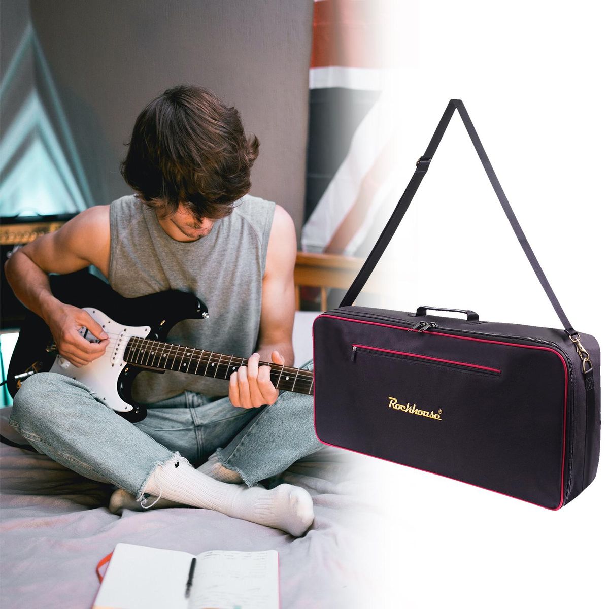 Buy Rockhouse Effect Pedal Bag Guitar Pedal Board Carry Bag Oxford Cloth Portable Zipper Handbag Shoulder Bag with Detachable Strap (Black) in Nigeria