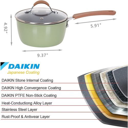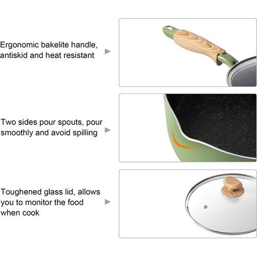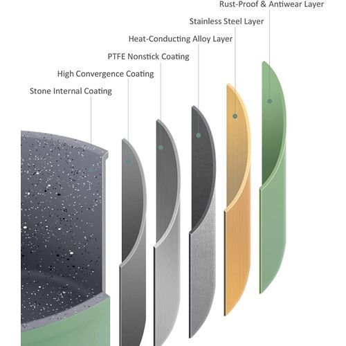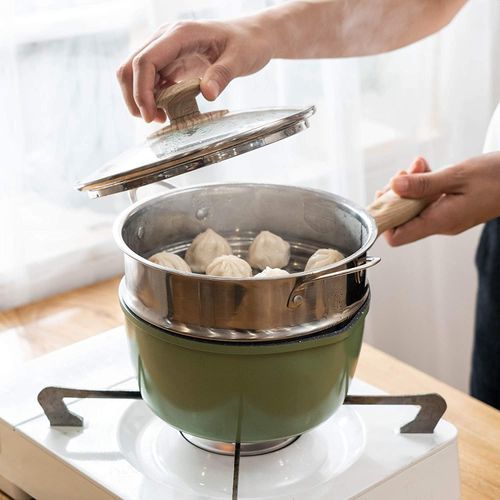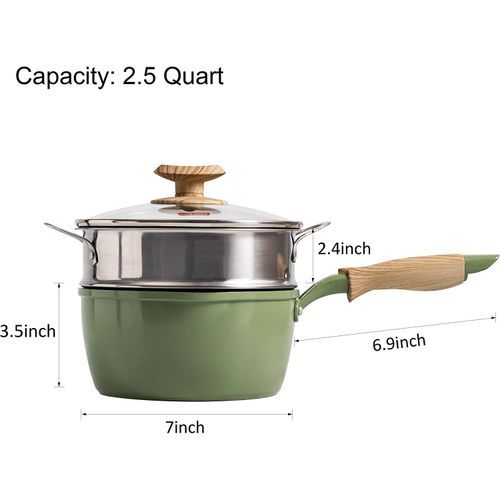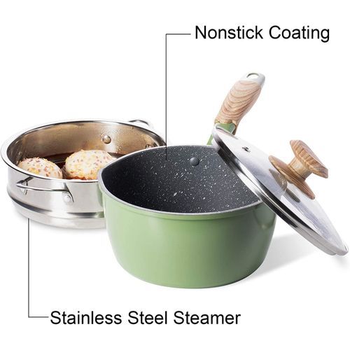 Nonstick CoatingExcellent 3 layers coating: stone internal coating, high convergence coating and non-stick coating, provides exceptional performance, PFOA free and non-toxic for healthy cooking, easy to clean. | Bakelite HandleHigh quality bakelite handle for good anti-slip and heat-resistance, with a hole for easy hanging. Proper color matching will be a beautiful scenery in your kitchen. | Stainless Steel Steamer304 stainless steel material, strong and durable, corrosion resistance, easy to clean, it makes this pot become multi-functional, you can use this pot to steam, boil, fry your desired food. | Compound BottomAluminum and stainless steel bottom works well on all types of stovetops, provides a stable heat distribution and rapidly heating up. |