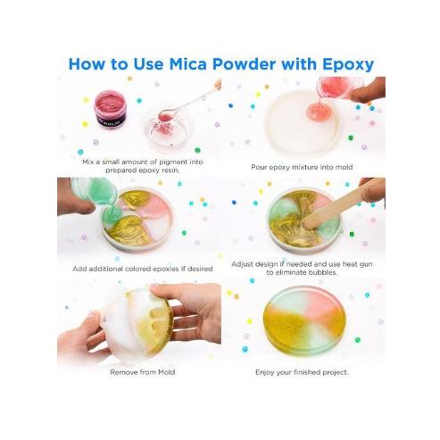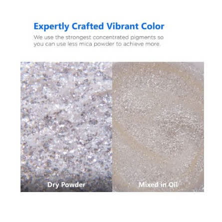 Mica Powder is one of the most amazing versatile shimmering pigments on the market. You can use it in hardcore professional crafts like car paint, epoxy resin countertop, flooring, fixtures, fiberglass dye, or resurfacing. Use it in practical projects like candle making, car freshies, hand soap, bath bom, lip gloss shading, lip stick, coasters, eye shadow, nail polish, acrylic and fiberglass nails, and sculptures. You can even use it in fun projects like metallic slime, painting, art, and so much more!