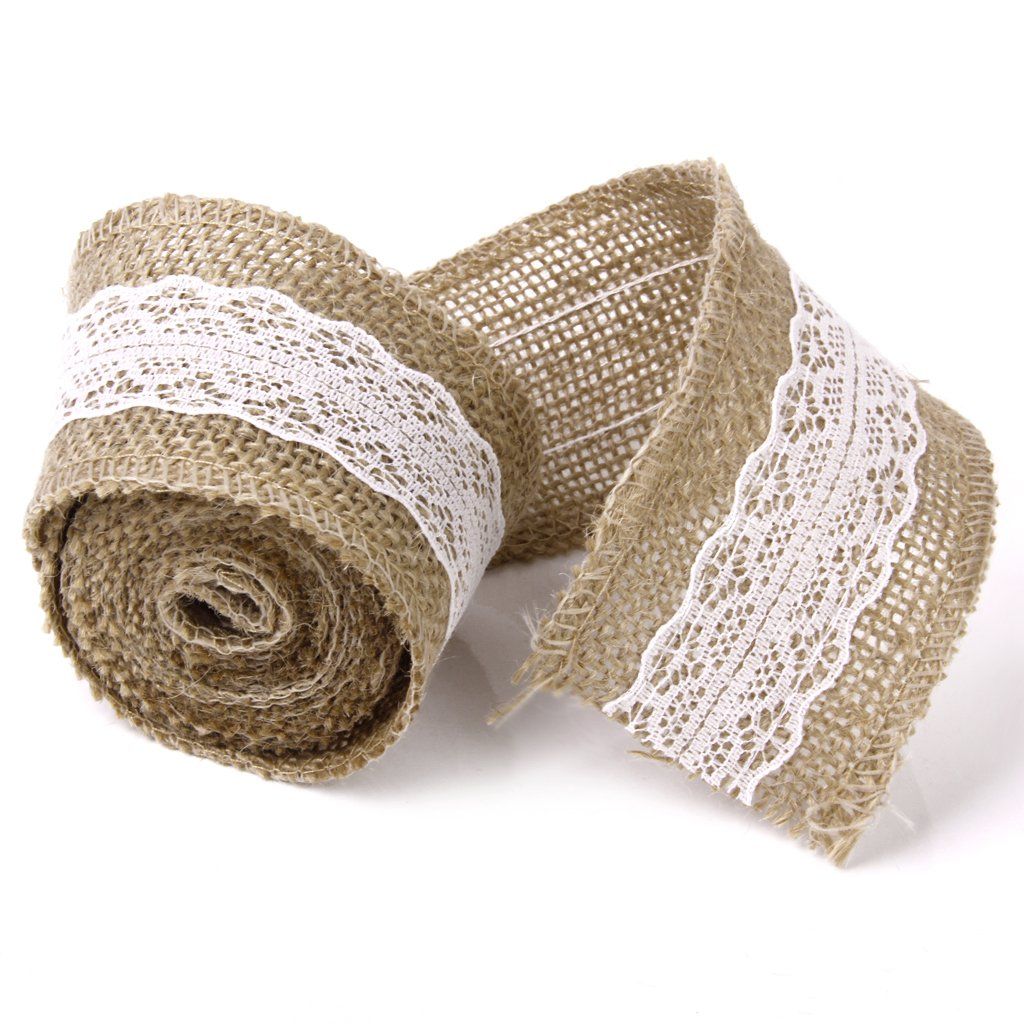 SODIAL(R) Roll of 2M Wedding Home DIY Craft Buap Ribbon White Lace Decorated Width 5cm