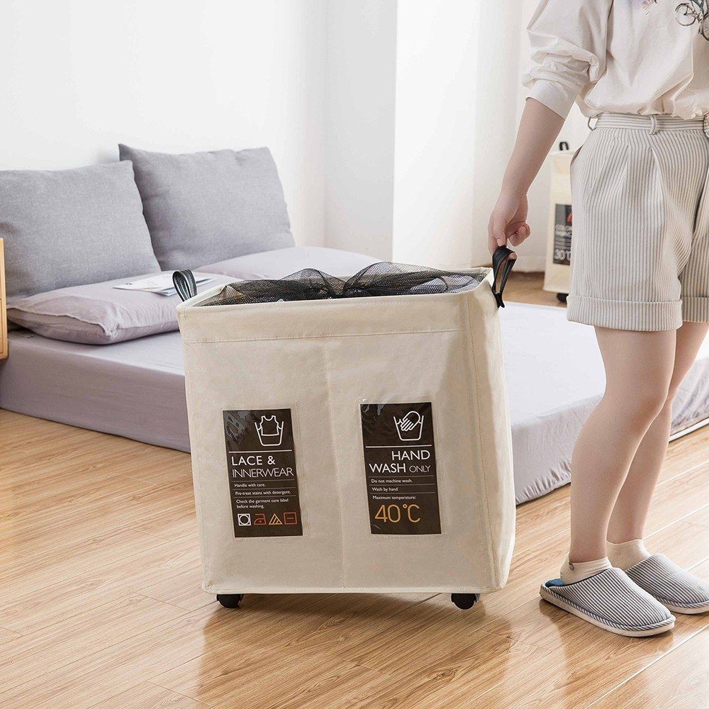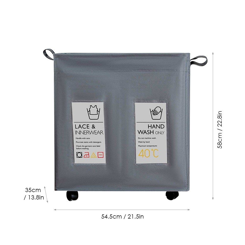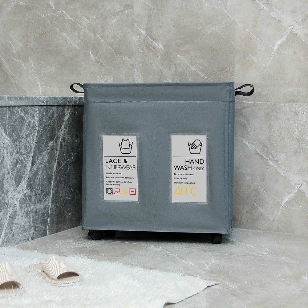 Large capacity, 2 separated baskets offer enough room for your dirty clothes. Put sort card into the PVC film storage bag in the front for easy distinction.