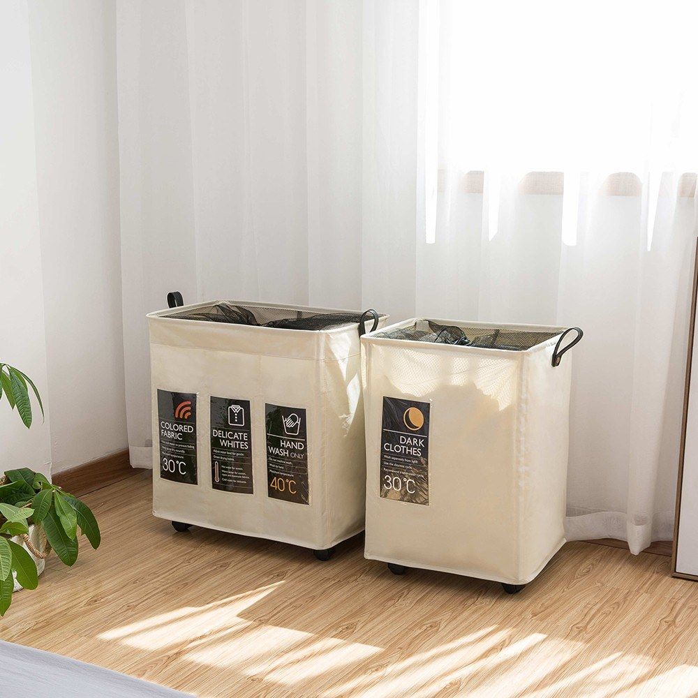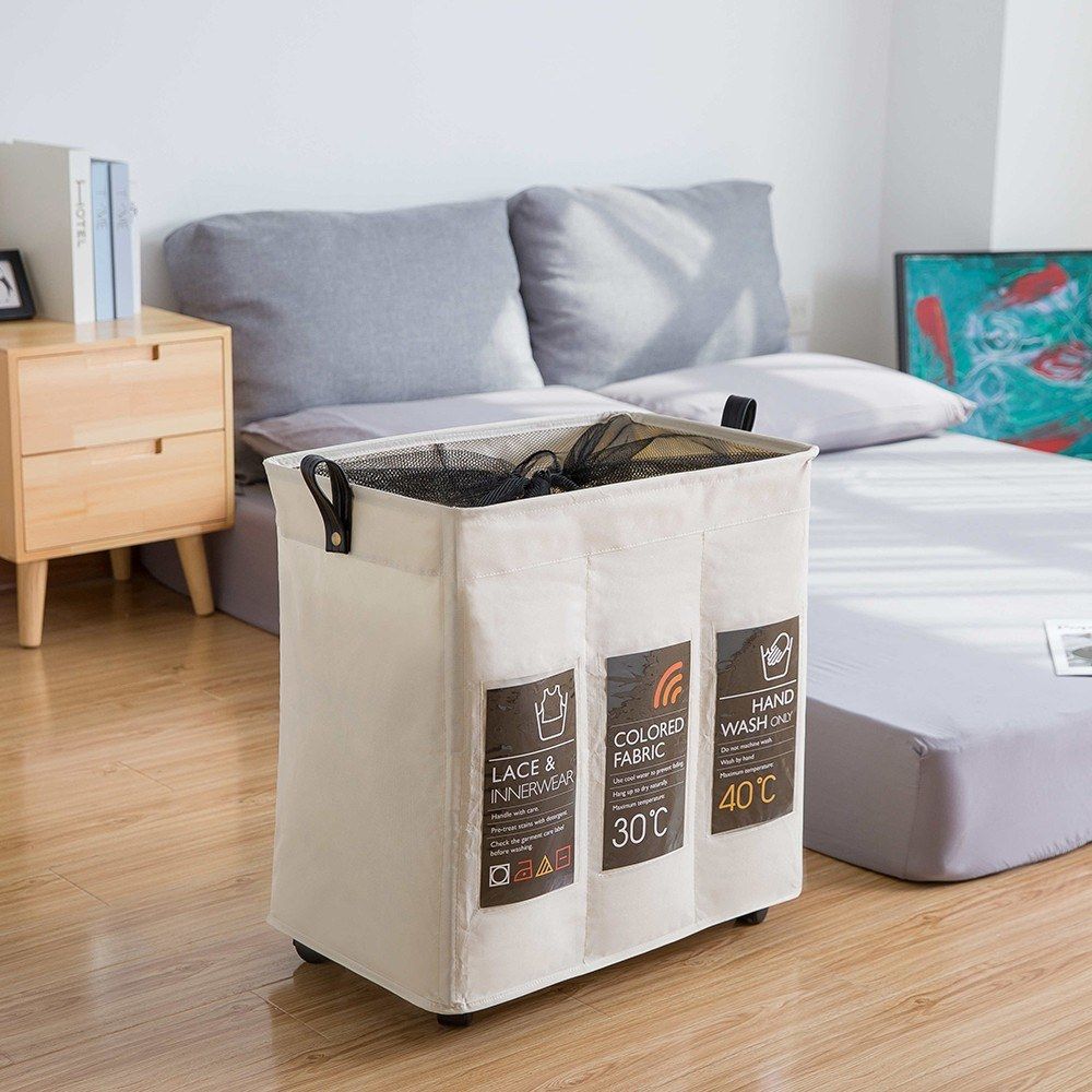 Large capacity, 3 separated baskets offer enough room for your dirty clothes. Put sort card into the PVC film storage bag in the front for easy distinction.