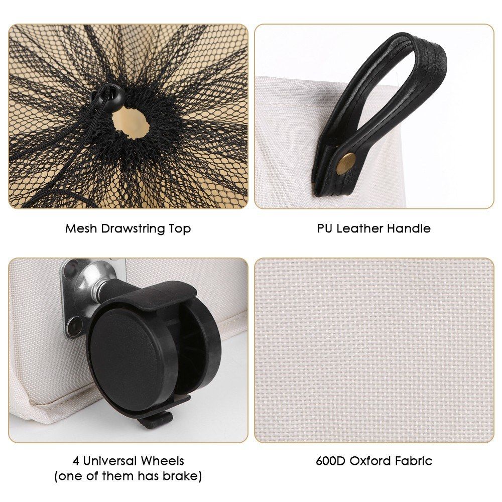 Mesh drawstring top laundry basket, perfect for holding your dirty clothes. Using wear-resistant and tear resistant oxford cloth material. With 4 universal wheels for convenient transportation.