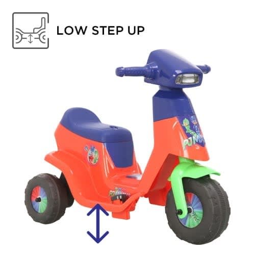Three sturdy support wheels offer better balance and performance as miniature motorists get their bearings. Rollplay's PJ Mask 6 Volt Scooter gets its power from a 6 Volt battery and charger (battery and charger included). The maximum weight is up to 50 lbs and is recommended for ages 2 years to 5 years.