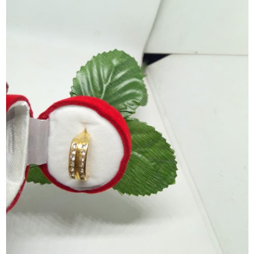 This elegant yellow gold plated wedding ring set boasts an amazing array of AAA grade cubic zirconia. This wedding ring style is a classic style that will withstand the various trends in engagement and bridal jewelry.