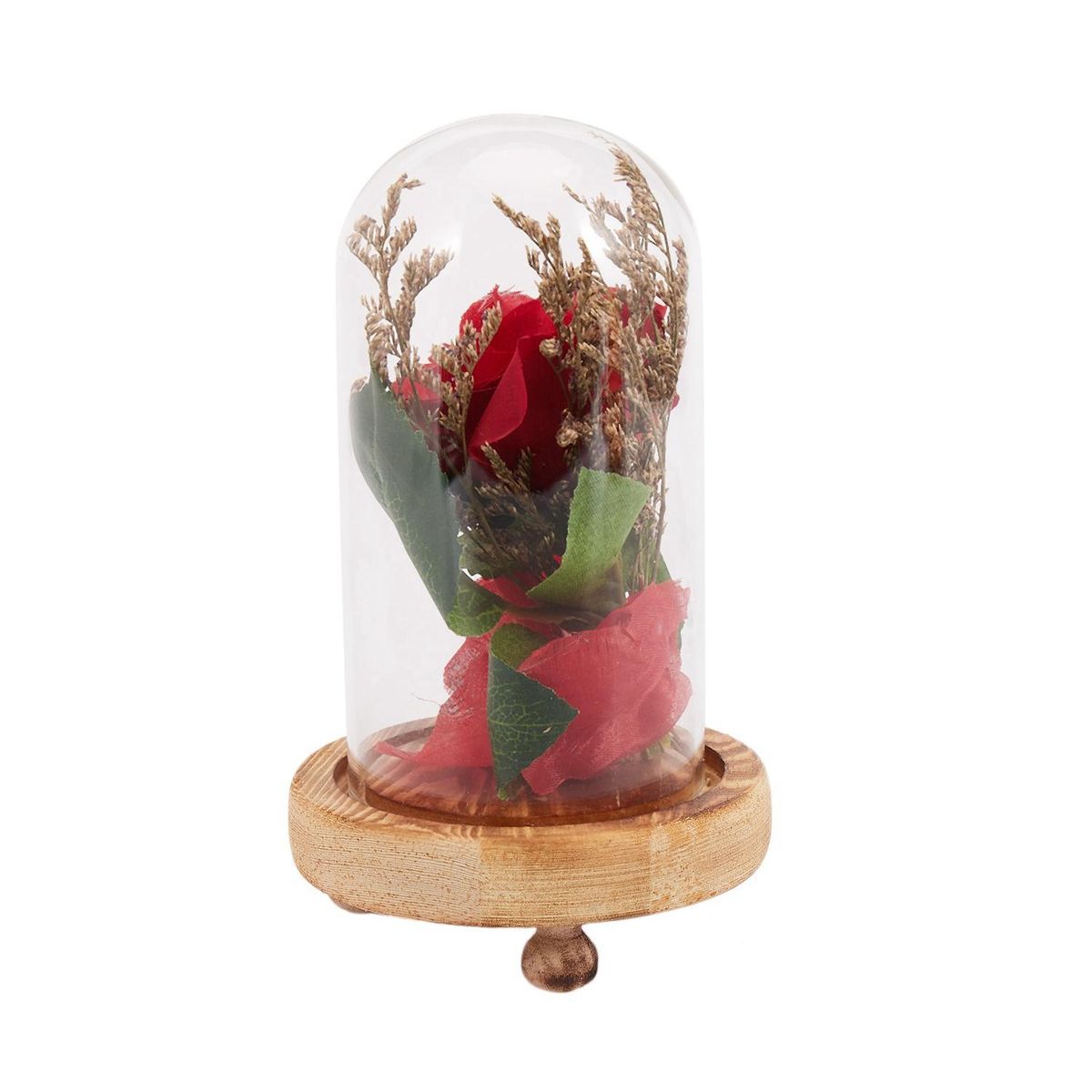 Romantic Red Rose In A Glass Dome On A Wooden BaseModel Number:Red Rose w/ Fallen Petals in a Glass Dome