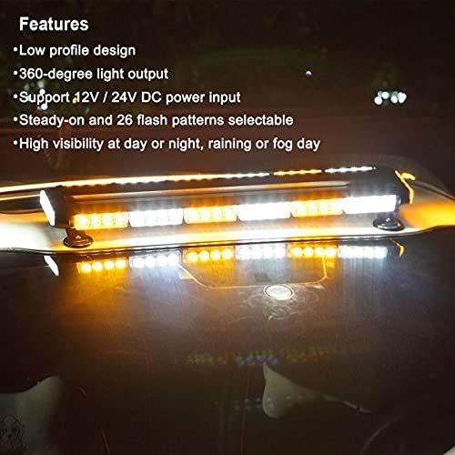 - Support 12 volt / 24 volt DC power input; great powerful magneti amber white aution light bar for tow truks, dump truks, pikup truks, plow trators, skid steer loaders, onstrution equipments, rural mail arrier van, roadside istane vehiles, seurity guard patrol vehiles, pilot / esort vehiles and volunteer personal vehiles