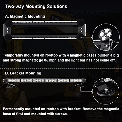 - IP level waterproof rating, aluminum alloy housing with 4 heavy duty magneti bases (an go mph and the traffi warning light bar has not ome o), an be temporarily or permanently mounted on the rooftop of vehiles