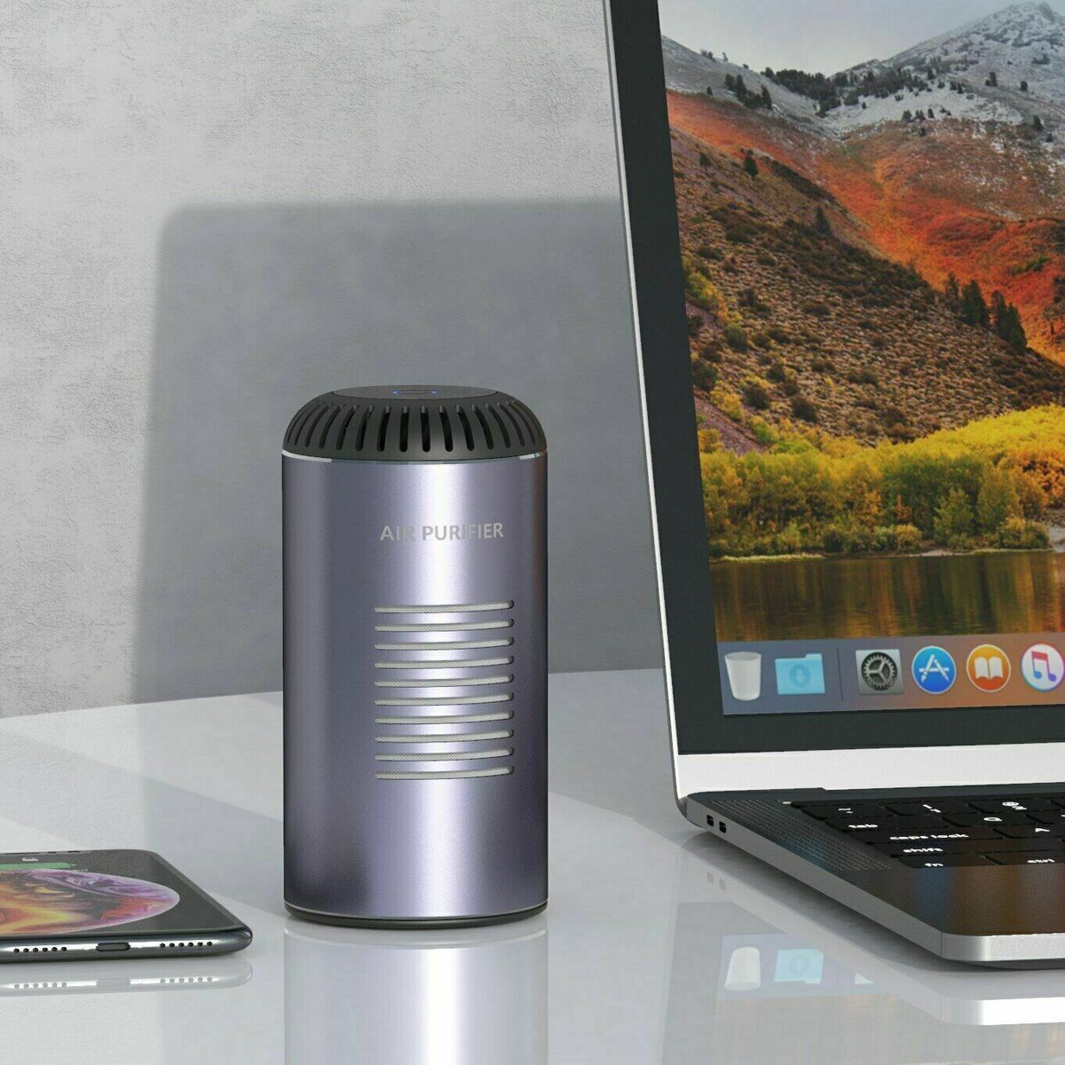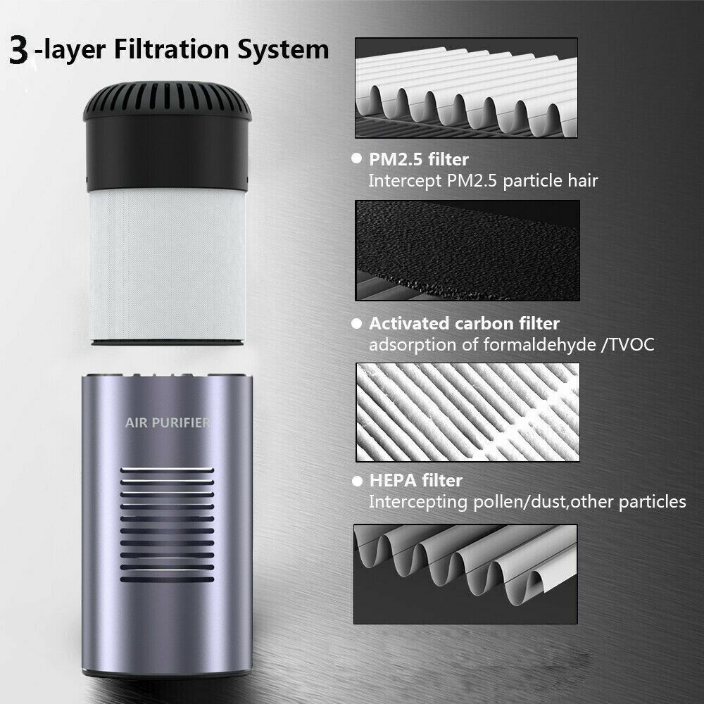 Quiet Operation Wireless Anion fresh Purify smog HEPA high efficiency filtration Support wireless charging Office / car portable air purifier Portable disassembly design about 95% Powerful filtering Built-in UV lamp beads Germicidal UV Lamp Application: Car, Personal, Recreational Vehicle (RV), Refrigerator, Whole House, Whole Room 1*Air Purifier