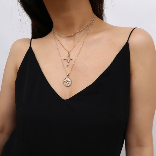 Buy Rose Cross Pendant Layered Necklace- Gold in Nigeria