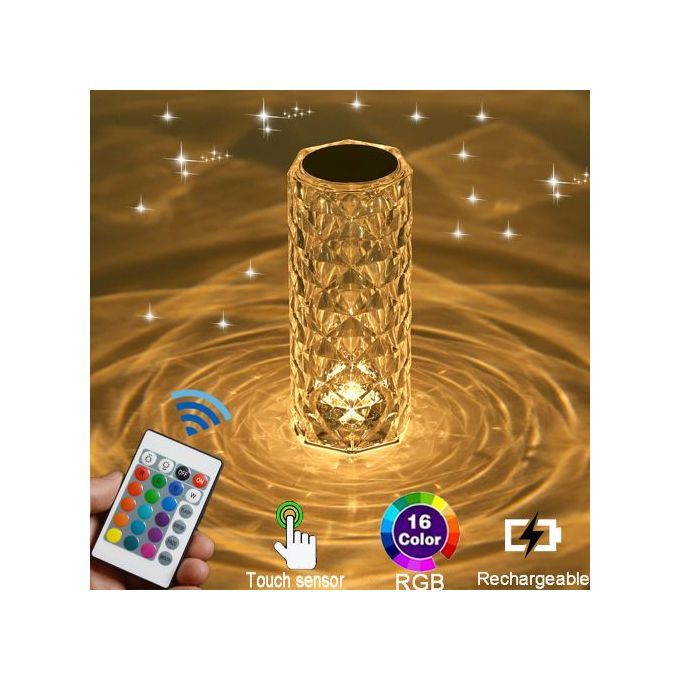 Crystal Table Lamp Touch Remote Diamond Rose Lamp Room Decor Atmosphere great for Bedside, center table,dinning table, bars etc Night Light Desktop Projector Lights.