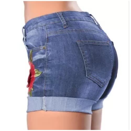 Buy Rose Embroiderd Turnup Cuff Blue Denim Shorts - Sky Blue in Nigeria