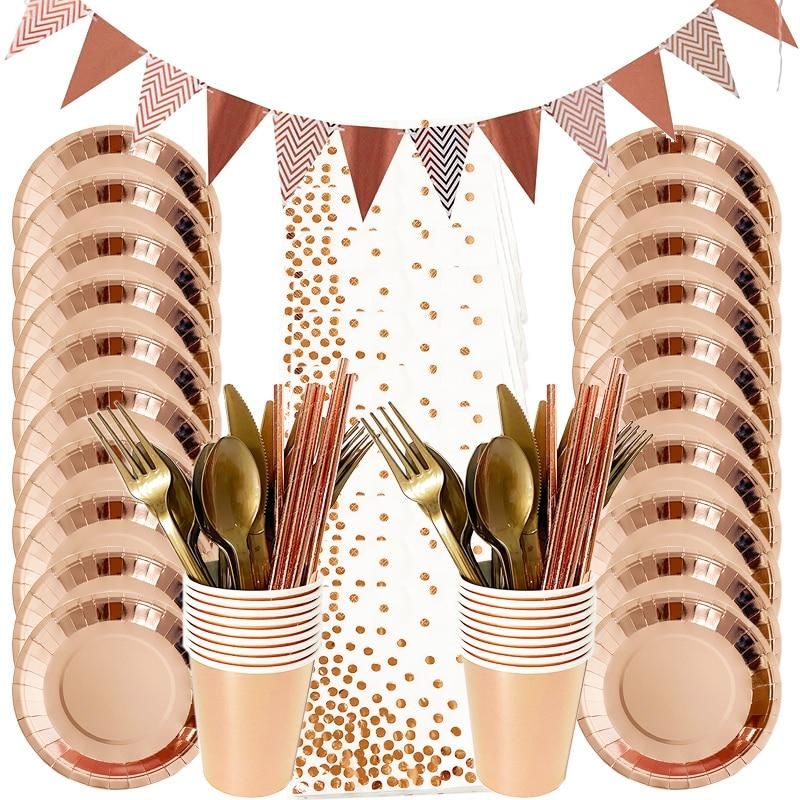 Buy Rose Gold Party Disposable Tableware Set Paper Plate Cup Kids Adult Birthday Wedding Bachelorette Party Decoration Baby Shower in Nigeria