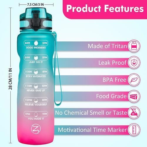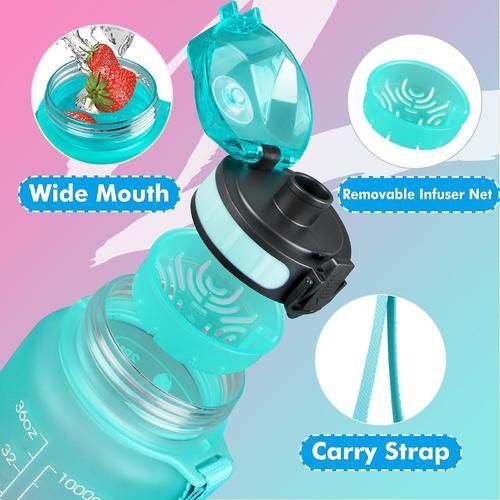(Rose Pink)Motivational water bottle with time marker,leakproof sports water bottle bpa ,fruit water bottle sports 1 liter
