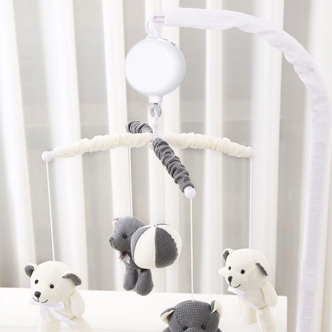 The bottom hook rotates while playing music for you to hang some bed ringing toys.