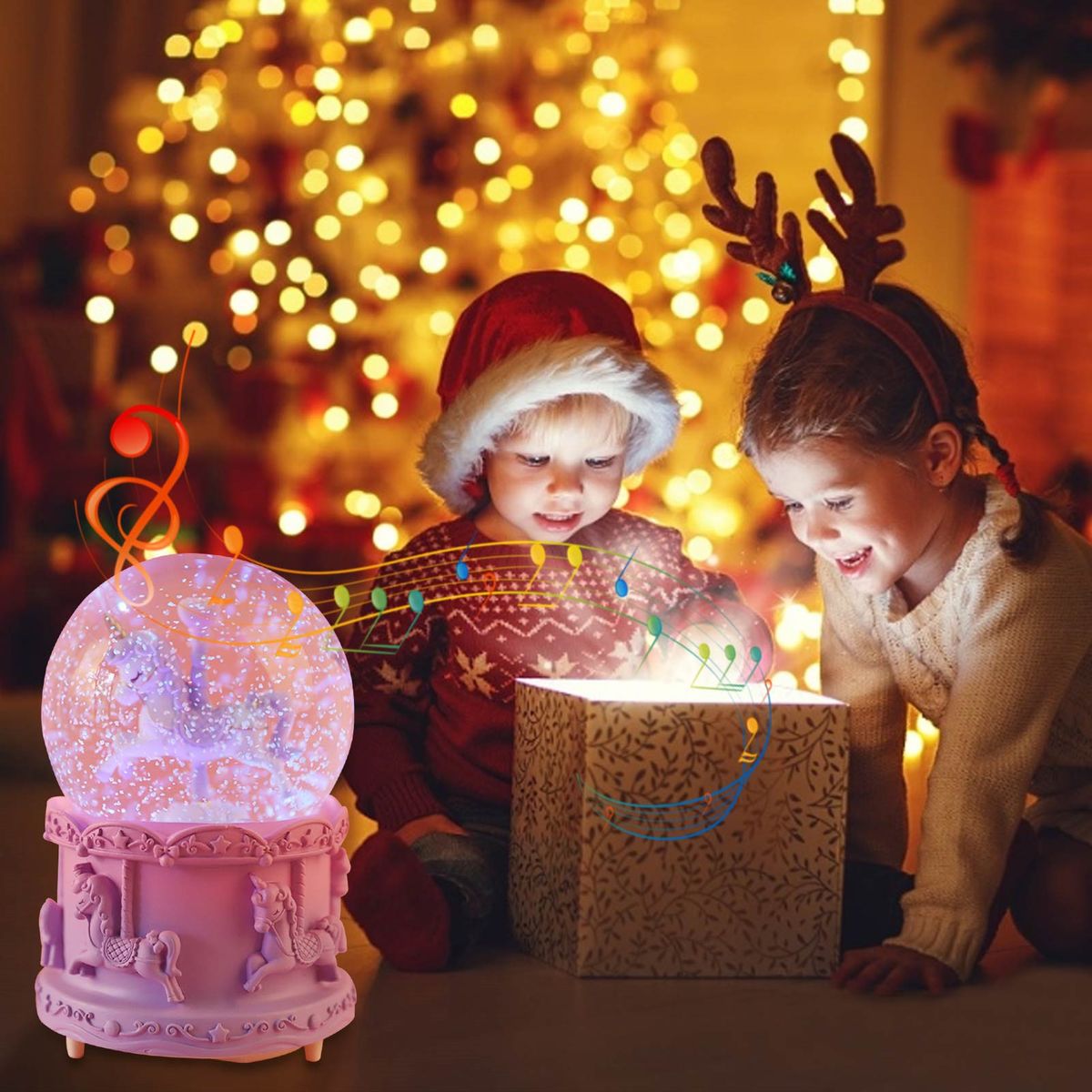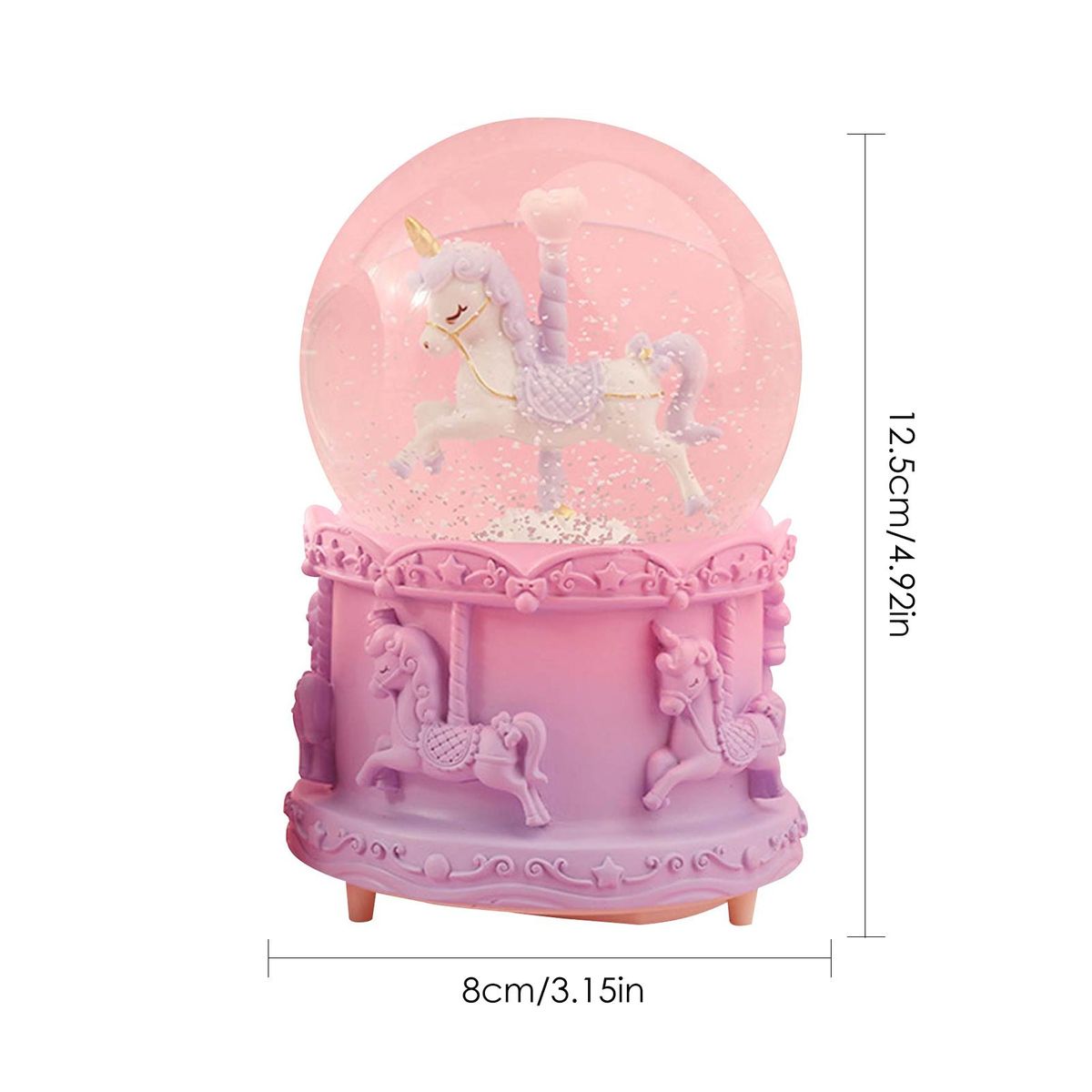 1、Rotating Music Box: A music box with carousel, when playing music, there is a horse in the gla ball 2、Snowball with Glitter: There is glitter inside, so you can shake it and turn it on, like snow falling. 3、Exquisite Workmanship: Exquisite design, high-end resin, gilding, gorgeous hand-carved top cover, beautiful music with winding up, make the music box beyond your expectations. 4、Great Gift: Ideaift for friends, lovers and children. A perfect decoration for home, bedroom, shop, holiday parties and Christmas decorations. 5、Item Size: Medium 8*12.5cm, large 10*15.5cm, need 3 AAA batteries (not included), you can put this crystal music box in the living room, bedroom, study room and office. Specification: Name:CrystalBallMusicBox Singleweight(approx.):mediumsize0.6kg;largesize1kg Packaging:carton Material:resin+gla Productsize(approx.): medium8*12.5cm/3.15*4.92in large10*15.5cm/3.94*6.1in Powersupplymode:3AAAbatteries(notincluded) PackingList:
