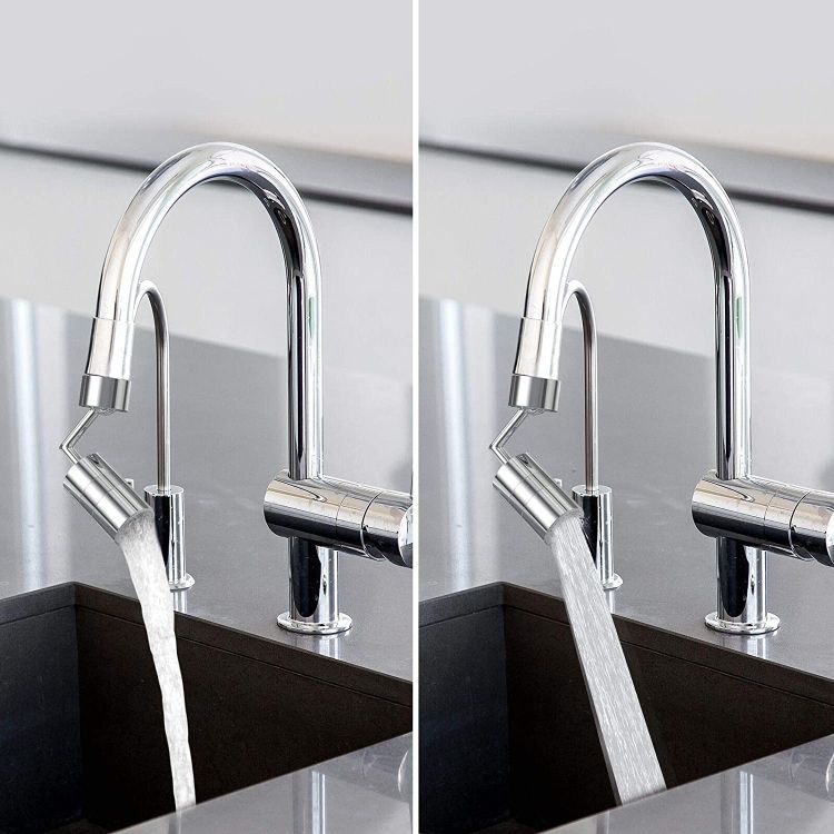 5. 720-degree rotating upward water outlet, dual water outlet mode (strong impulse mode + bubbling and splash-proof mode)